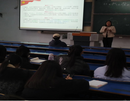 包红梅老师以“学习党的二十大,奋进新学期”为主题,为化工与印染工程学院和材料工程学院2021级学生讲授了开学第一课。依据党的二十大报告的原文,围绕学生们的关心的话题,包红梅老师的课程主要设计了三个内容:一是二十大简介;二是深入学习党的二十大精神;三是以实际行动筑梦自强新时代。课堂采用视频、音频、图片、文字等多种形式,不仅对报告的基本版块、逻辑结构进行了梳理,而且对报告的新提法、新观点进行总结概括和系统阐释,很好地回应了同学们的重大理论关切,包老师讲解深入浅出、重点突出、脉络清晰。授课过程中,老师与同学们热烈交流互动,一起谈学习、谈理想、谈人生,讲座达到较好的育人效果。