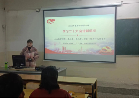 2023年春季学期是深入贯彻习近平新时代中国特色社会主义思想和党的二十大精神的关键学期,马克思主义学院利用开学之初的大好时机,积极组织教师围绕“宣传贯彻党的二十大精神、习近平总书记视察河南安阳重要讲话精神和党中央关于疫情防控工作的最新要求”三方面内容,精心备课为学生开设开学第一课。